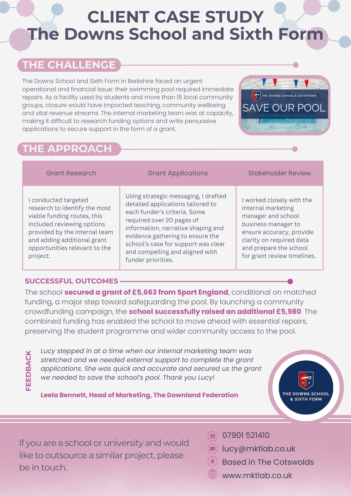 Consultant Head of Marketing for Sixth Form College. Undertook management of marketing team, devised enrolment campaigns including radio and outdoor ads, social media and prospectuses.
